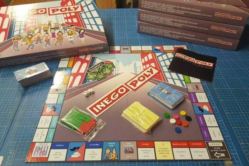 Dans cette perspective, notre centre de documentation met en avant un outil pédagogique original : Inégopoly, disponible en prêt. Créé en 2020 par le Conseil Communal des Enfants d’Ecaussinnes, ce jeu s’inspire du célèbre Monopoly, dont il reprend les mécanismes principaux : acheter des propriétés, construire des maisons et des hôtels, éviter les pièges financiers et tenter d’accumuler le plus d’argent possible.