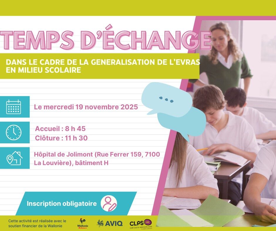 Le CLPS Mons Soignies vous invite à une matinée d’échanges et de rencontres entre CPMS, PSE et centres de planning familial afin d’aborder la thématique de la généralisation de l’EVRAS.