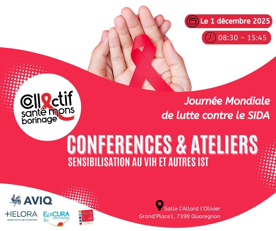Dans le cadre de la journée mondial de lutte contre le SIDA, le Collectif Santé de Mons Borinage organise une journée de sensibilisation au VIH et autres IST.