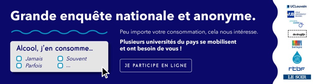 Dans ce contexte, Univers Santé, qui coordonne la campagne Tournée Minérale, s’associe à l’UCLouvain et à la VUB pour mener une vaste enquête nationale et anonyme sur la consommation d’alcool en Belgique.