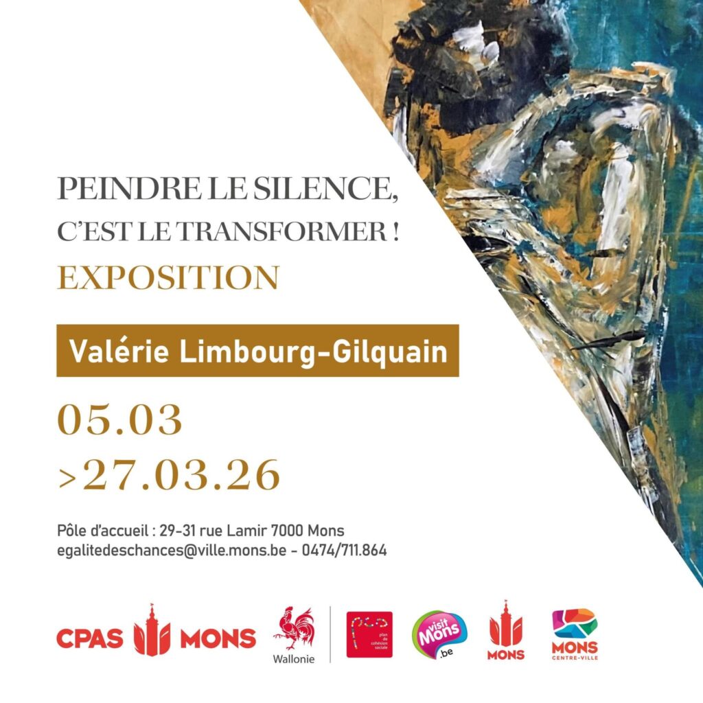 - Exposition « Peindre le silence, c’est le transformer ! » par l’artiste montoise Valérie Limbourg-Gilquain, qui met en lumière les parcours de femmes courageuses et leur résilience par le biais de la peinture.